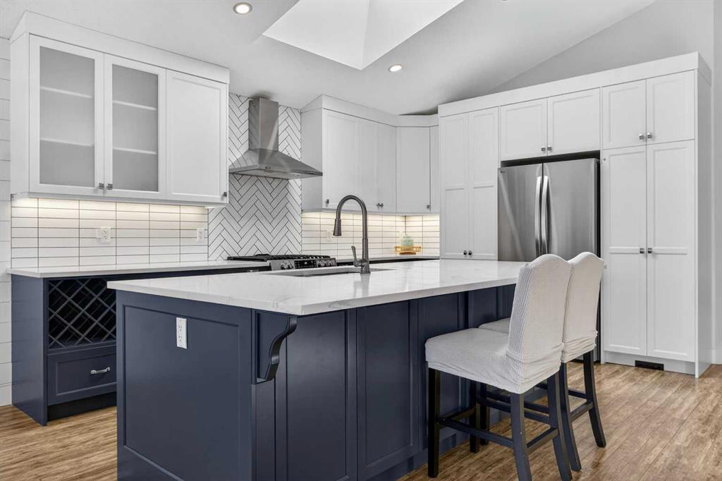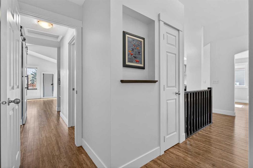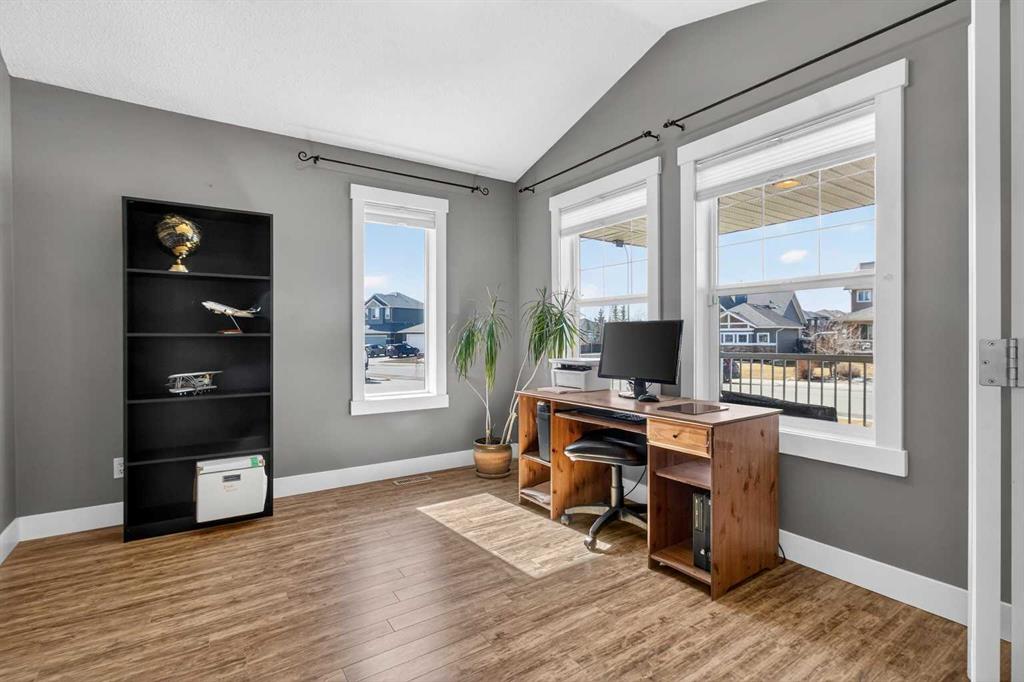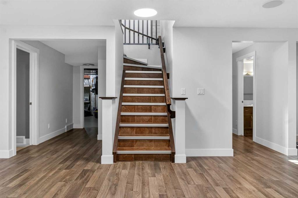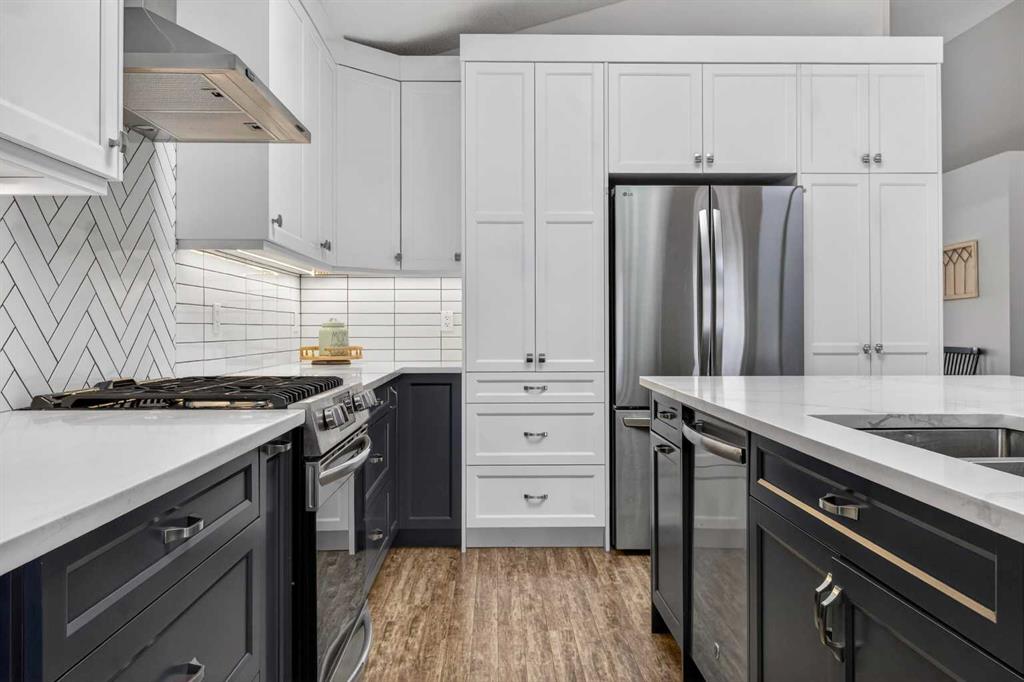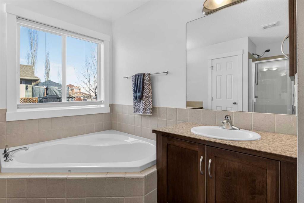 BOULDER CREEK ESTATES | VAULTED CEILINGS | CENTRAL AIR CONDITIONING | Immaculate, fully finished 4 bedroom, 3 bath, 1800 sq ft bungalow offers over 3,000 sq ft of beautifully designed living space! The charming curb appeal draws you in with a welcoming front porch and an impressive triple car garage, setting the tone for the exceptional home that awaits. Boasting a bright and airy open floorplan with soaring cathedral ceilings and abundant windows, this home features a formal dining room, a spacious den, and a welcoming living room with a gas fireplace for cozy nights in. The chef-inspired kitchen features granite countertops, stainless steel appliances, a gas stove, skylight, and ample cabinetry. The spacious primary suite includes a stylish barn door and a luxurious 5 pc ensuite. The fully developed lower level adds a large recreation room with a second gas fireplace, two additional bedrooms, generous storage, and the convenience of two laundry rooms. Situated on a private reverse pie lot backing onto green space, the landscaped backyard with underground sprinklers creates a peaceful outdoor retreat. Boulder Creek Estates is a vibrant community with nearby amenities including Boulder Creek Golf Course, the Langdon Fieldhouse, skatepark, playgrounds, schools, and local shops and restaurants, scenic walking paths, and convenient access to major commuting routes. Thoughtfully upgraded and meticulously maintained, this exceptional home offers space, comfort, and elegance just minutes from Calgary.